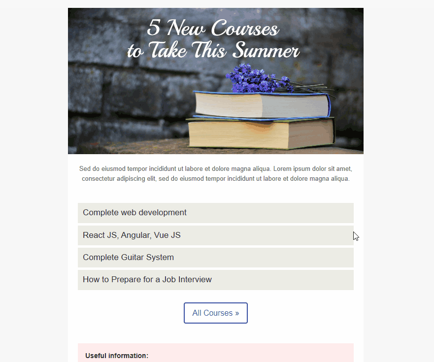 Технологія Accelerated Mobile Pages (AMP) дозволяє додавати інтерактивні елементи в лист. Користувач може виконувати дії без переходу на сайт: відповідати на опитування, переглядати контент або надсилати форму безпосередньо в листі.