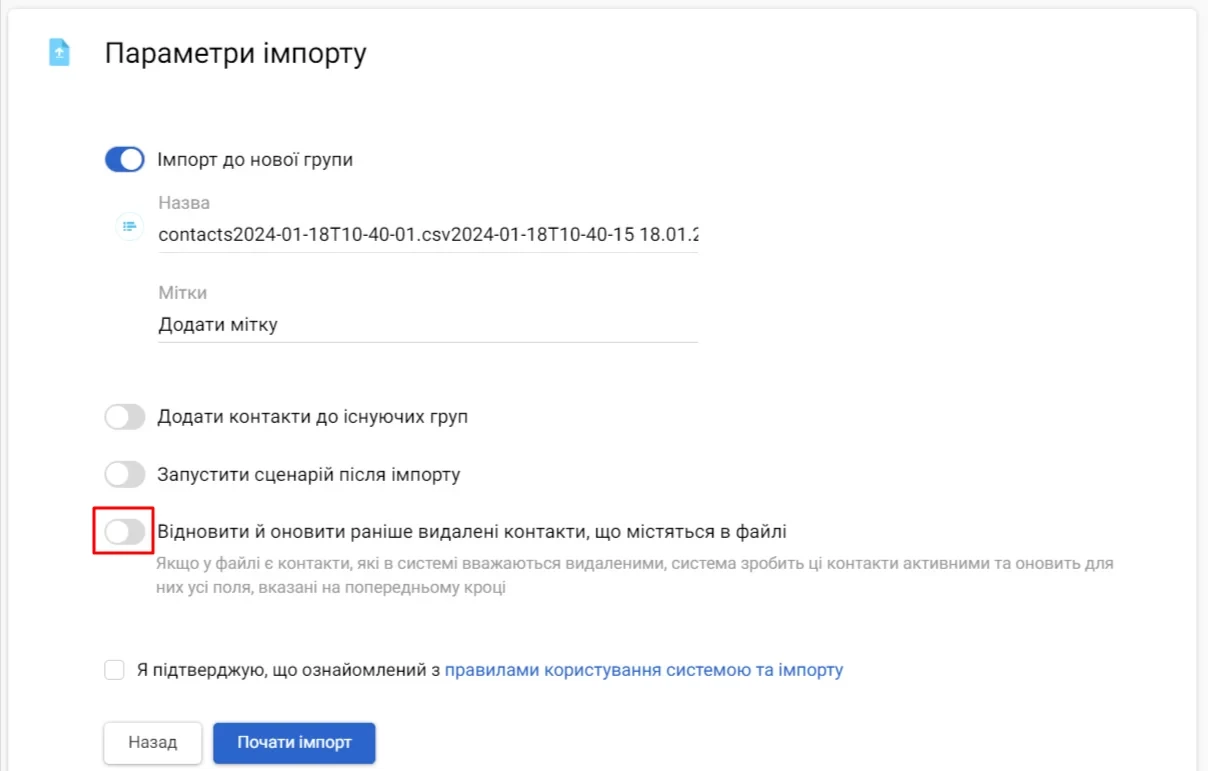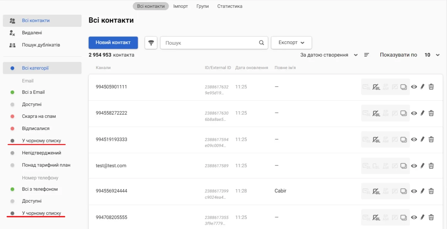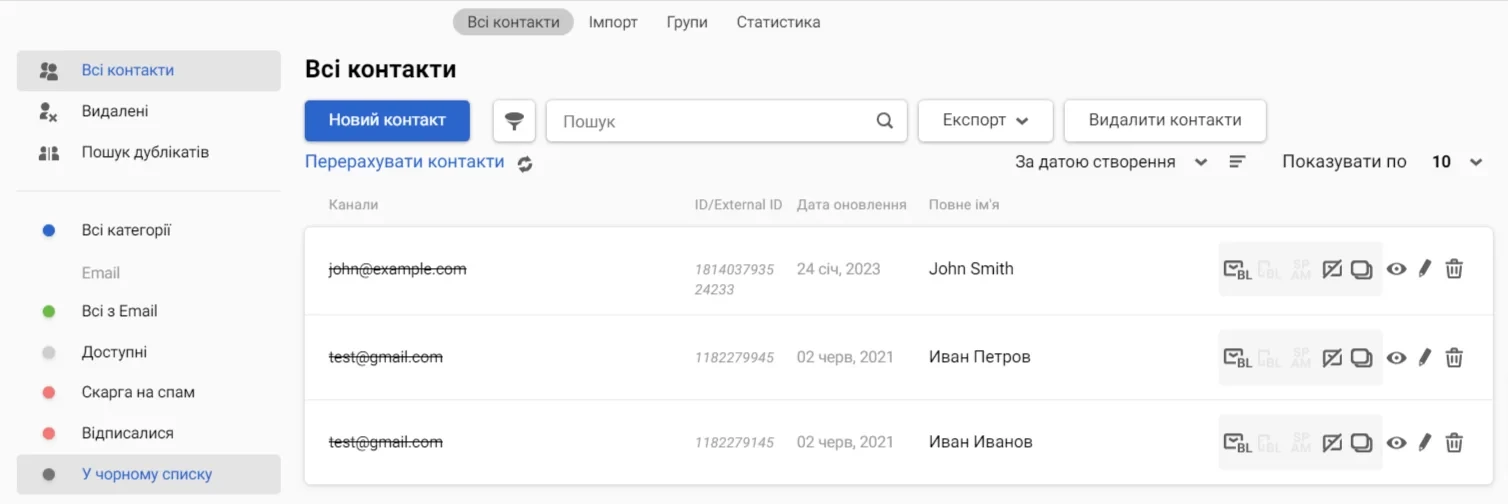 При цьому в разі повторного імпорту система розпізнає, що це контакти з чорного списку, і не запустить за ними розсилку.