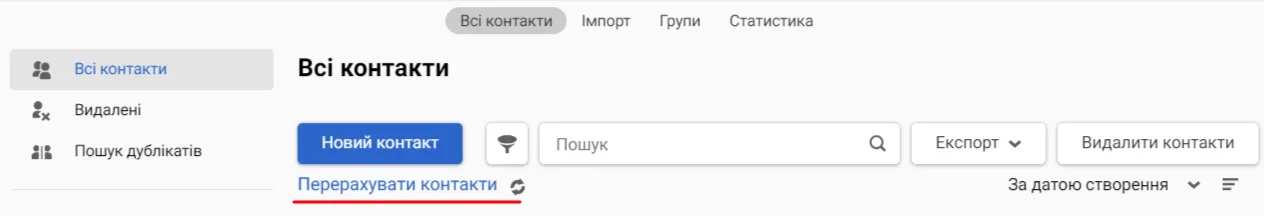 Щоб визначити кількість заблокованих контактів для кожного з каналів, клікніть Перерахувати контакти.