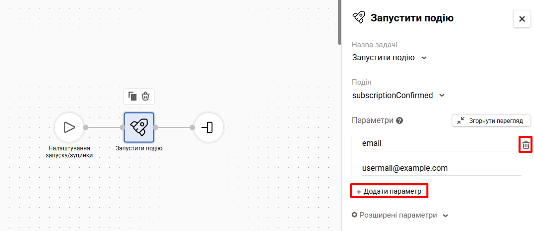 ВажливоВикористовуйте цей блок лише для найважливіших тригерних повідомлень. Задача ігнорує статус контакту, тому можливі скарги на спам, які надалі негативно позначаються на репутації відправника. Даний блок потрібен тільки для відправлення новому (ще непідтвердженому) підписникові листа з кнопкою підтвердження підписки, сповіщень про замовлення або зміну тарифного плану. В усіх інших випадках для відправлення листів використовуйте блок Email у групі блоків Повідомлення.