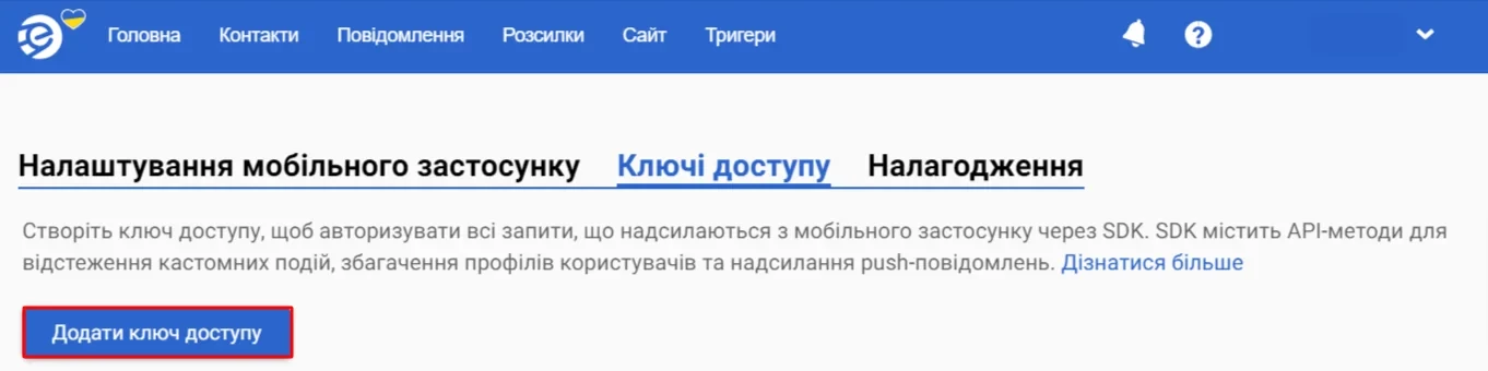 Після встановлення та налаштування Reteno SDK, вам необхідно створити для нього ключ доступу.