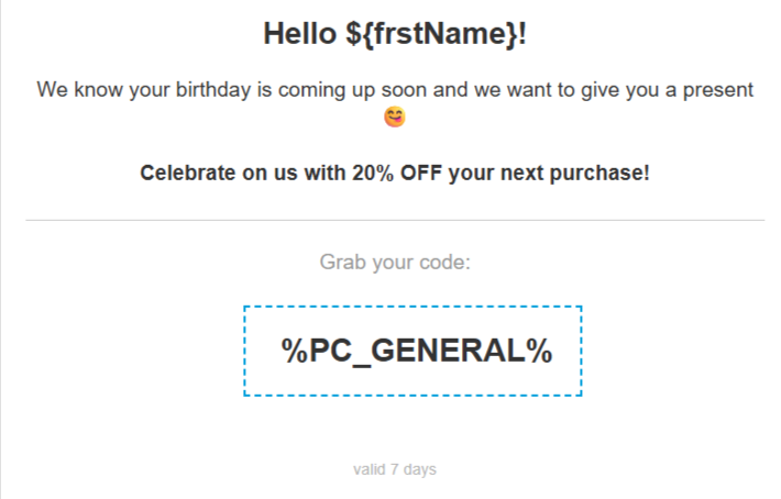 Персоналізація з використанням промокодів – це ефективний спосіб автоматичної персоналізації індивідуальних знижок та бонусів.