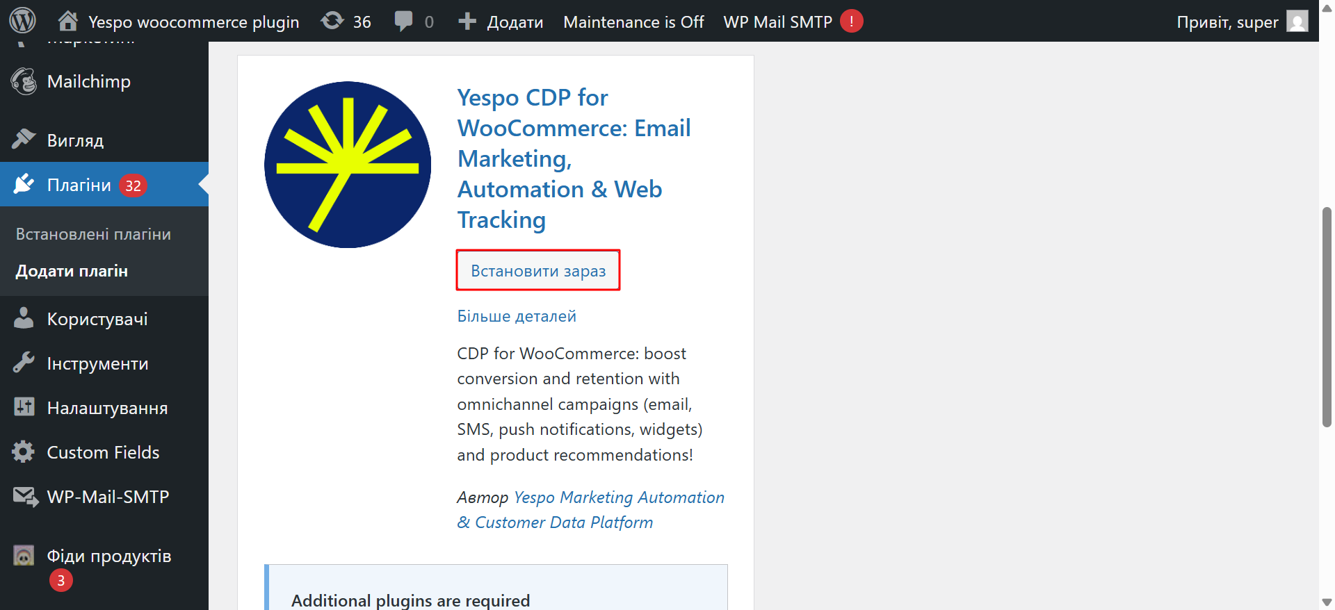Встановлення плагіна