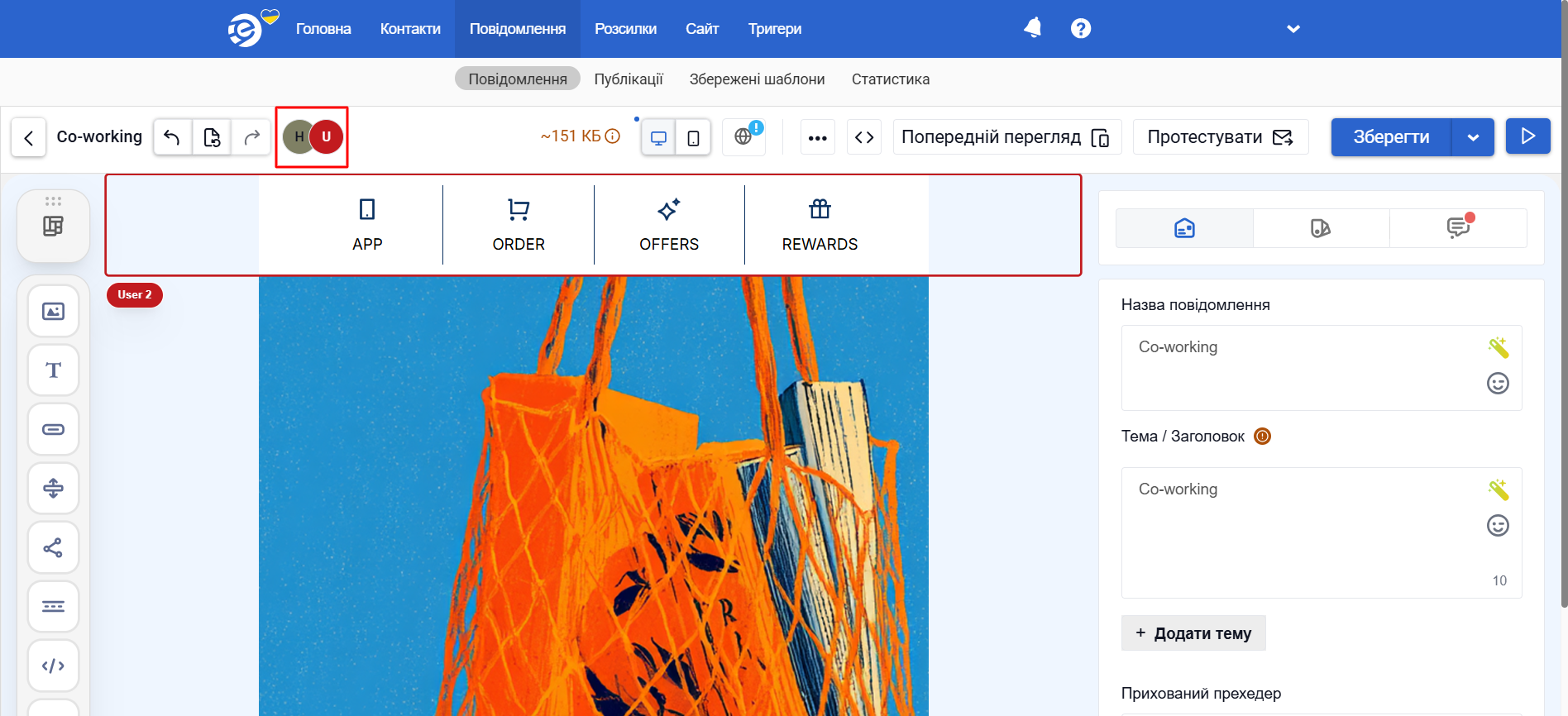 Функції спільної роботи допомагають команді працювати паралельно над одним шаблоном листа.