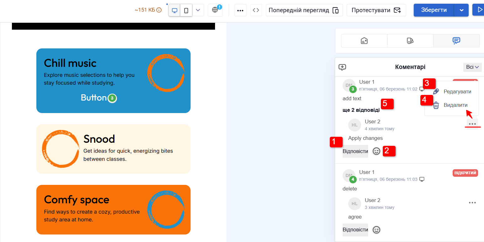 - Редагувати коментарі.