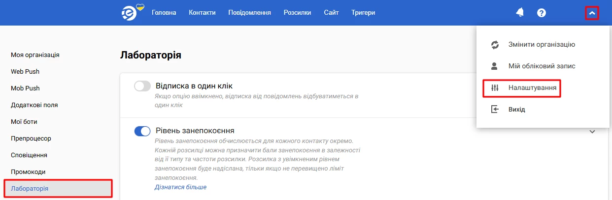 - В обліковому записі перейдіть на вкладку Налаштування → Лабораторія.