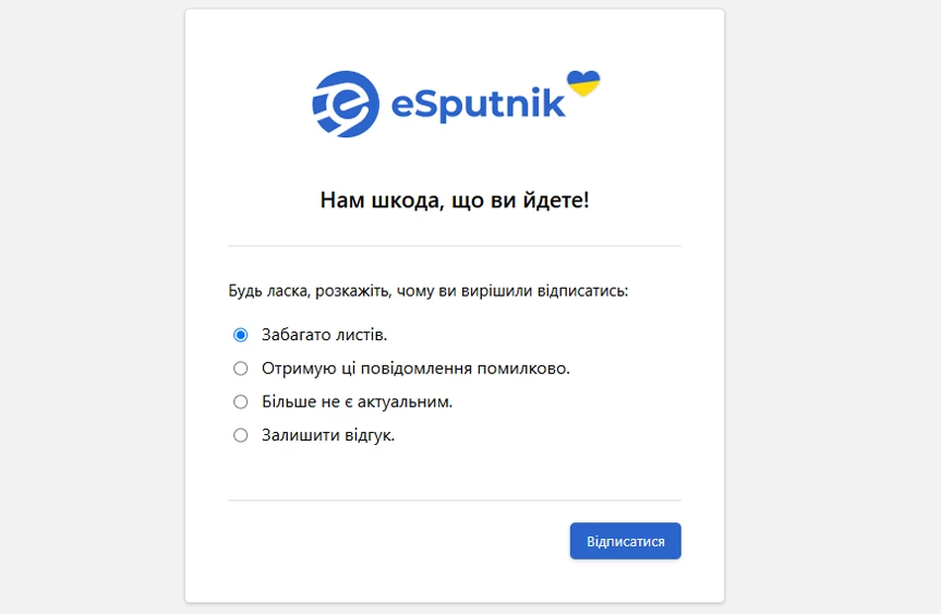 У eSputnik є такі варіанти відписки: в один клік, в два кліки, через категорії підписки.