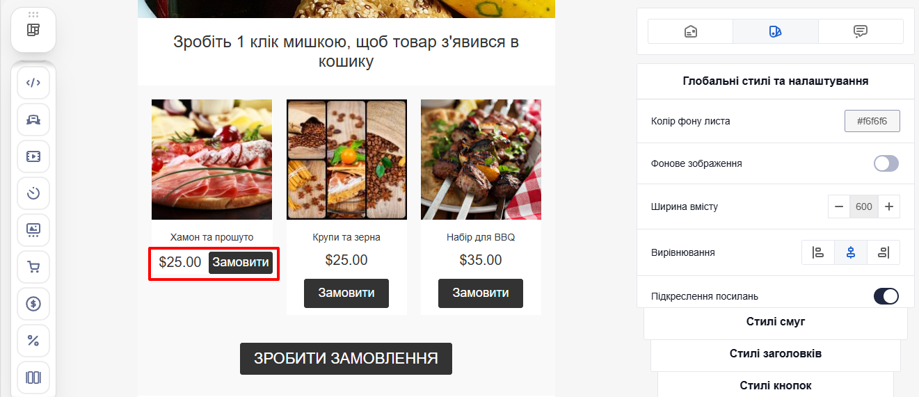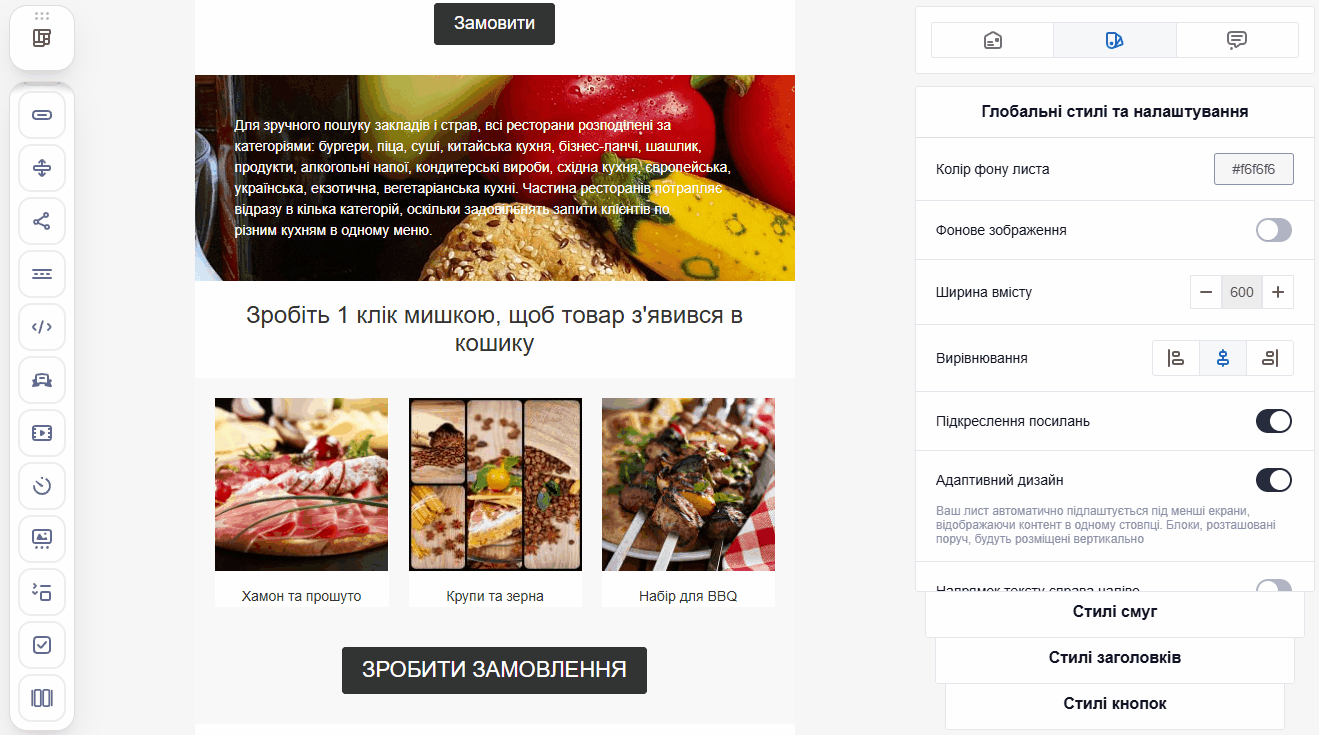 Блоки — це найменші структурні елементи шаблону листа. Вони знаходяться всередині контейнерів і безпосередньо містять контент. Саме в блоках ви додаєте текст, зображення, кнопки, відео та інші елементи повідомлення.