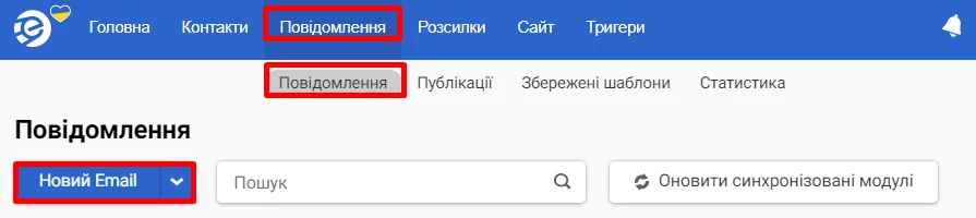 2. Перейдіть до розділу Повідомлення на вкладку Повідомлення та натисніть Новий email.