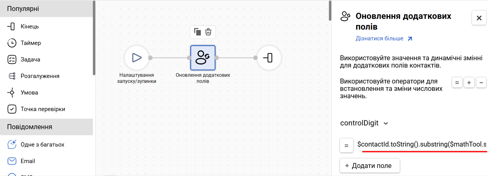 contactIdу додаткове полеcontrolDigit - Вираз: