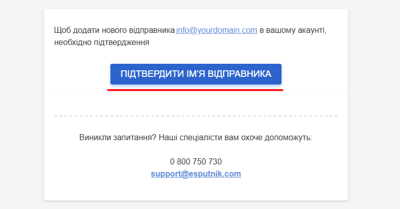 - Перейдіть за посиланням у листі від eSputnik Support, щоб підтвердити відправника.