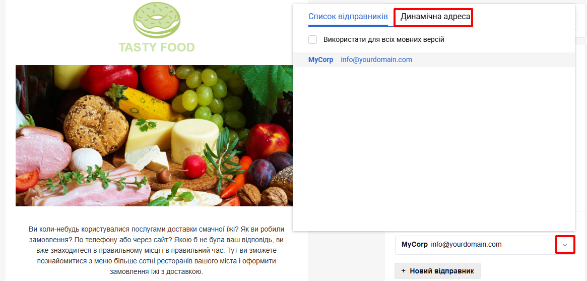 Динамічний відправник використовується для масових розсилок із різними іменами відправників.