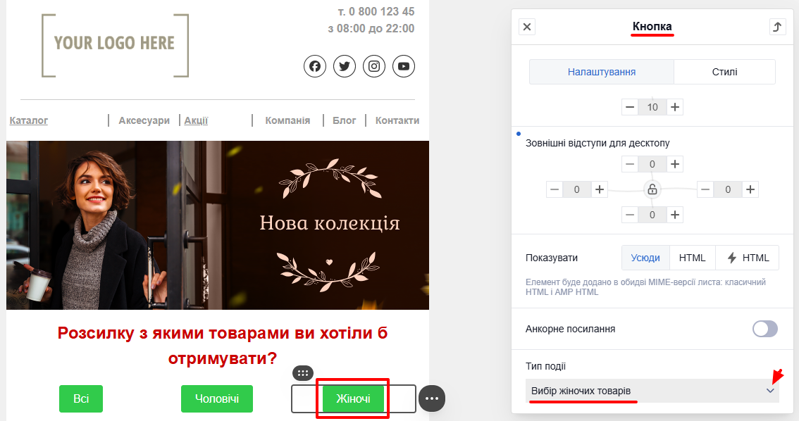 Тепер кожен контакт, який натискатиме кнопку з товарами, що його цікавлять, автоматично потраплятиме до відповідної групи. Для неї ви вже можете відправляти проморозсилки з релевантним контентом. За таким самим принципом ви можете самостійно генерувати нові події, налаштовувати для них складніші сценарії та прив'язувати їх до кнопок, картинок і навіть до текстових посилань у повідомленні.