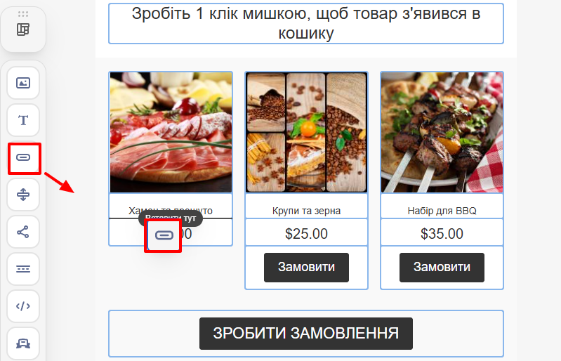У налаштуваннях кнопки можна обрати тип посилання. Це визначає, куди буде перенаправлений користувач після кліку.
