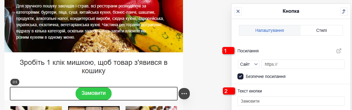 Посилання: URL-адреса, яка відкриється при натисканні на кнопку.