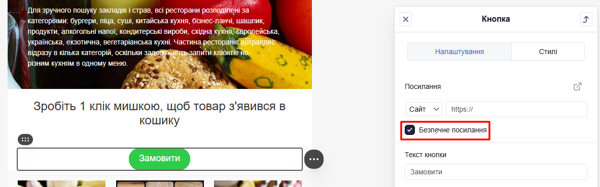 Після підключення в налаштуваннях кнопки з’являється прапорець Безпечне посилання.