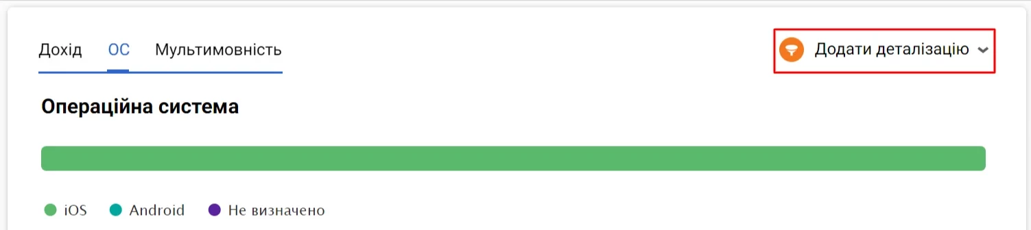 Праворуч угорі в розділі Додати деталізацію можна відфільтрувати дані з вкладок.